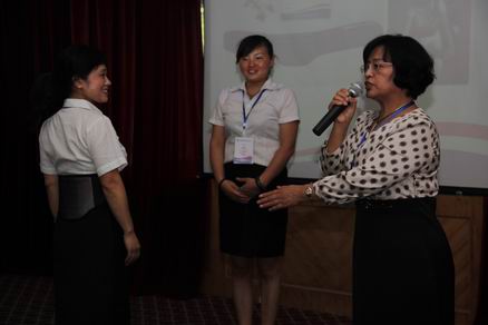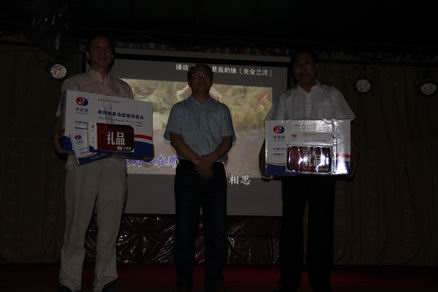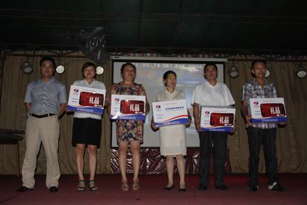 董事兼后勤保障部部长霍文献为购买梦斯康产品的顾客颁奖